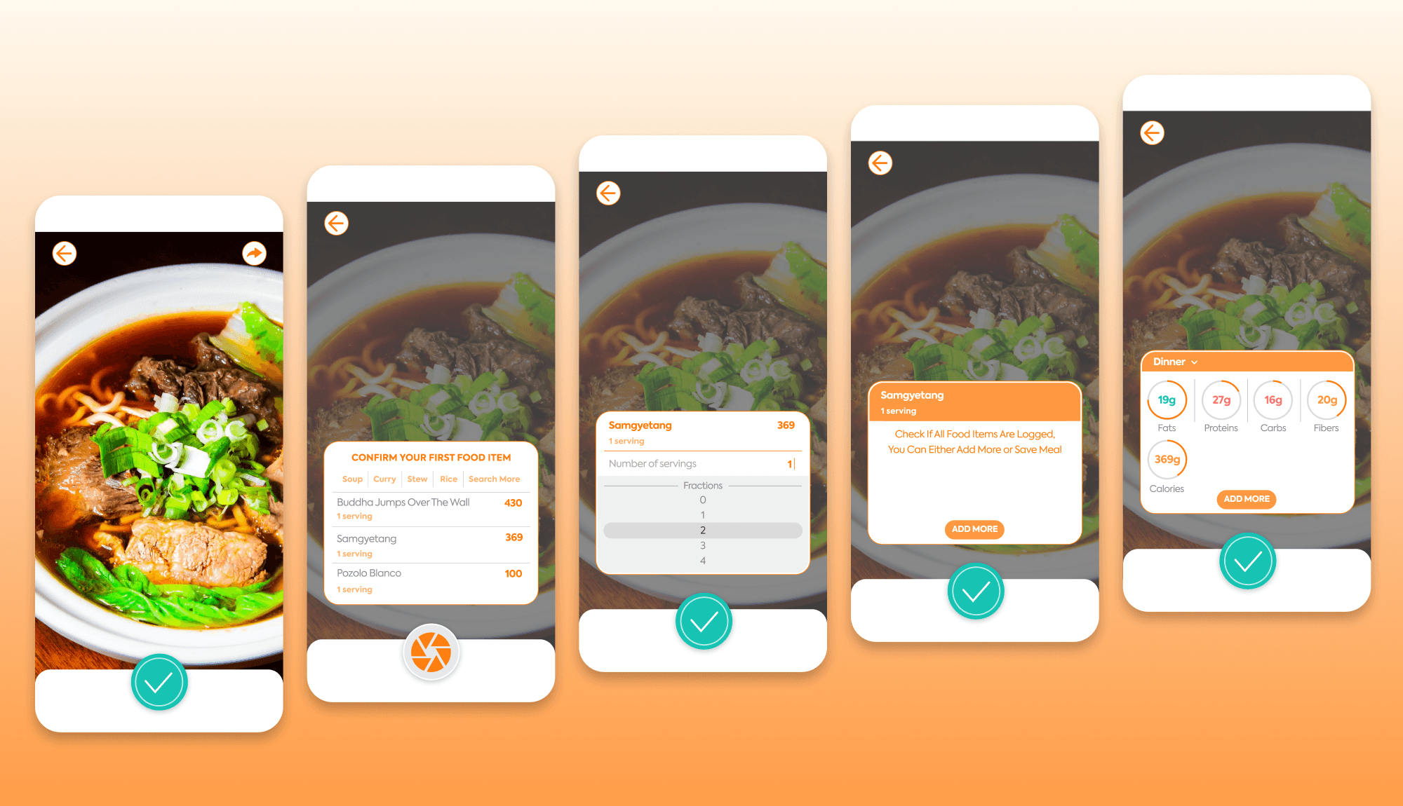As well as ordering food through the app, users can also buy or prepare their own food. In this way, it is necessary to have a shot & record function. In order to provide users with accurate data, after AI analyses the food photo, users can optionally modify the scan result.
