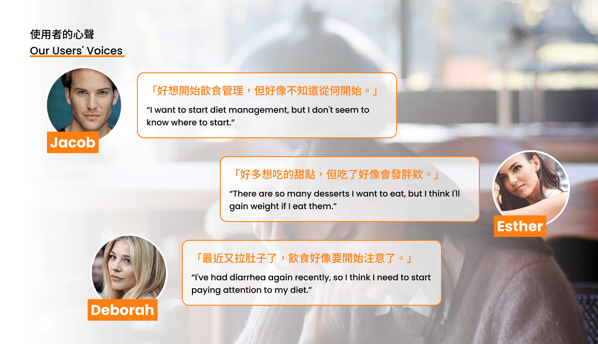 為精確了解使用者的需求,Onboarding 流程內容經過了三次的測試與修改。在此階段,系統會收集資料,並為使用者建立客製化的飲食檔案。